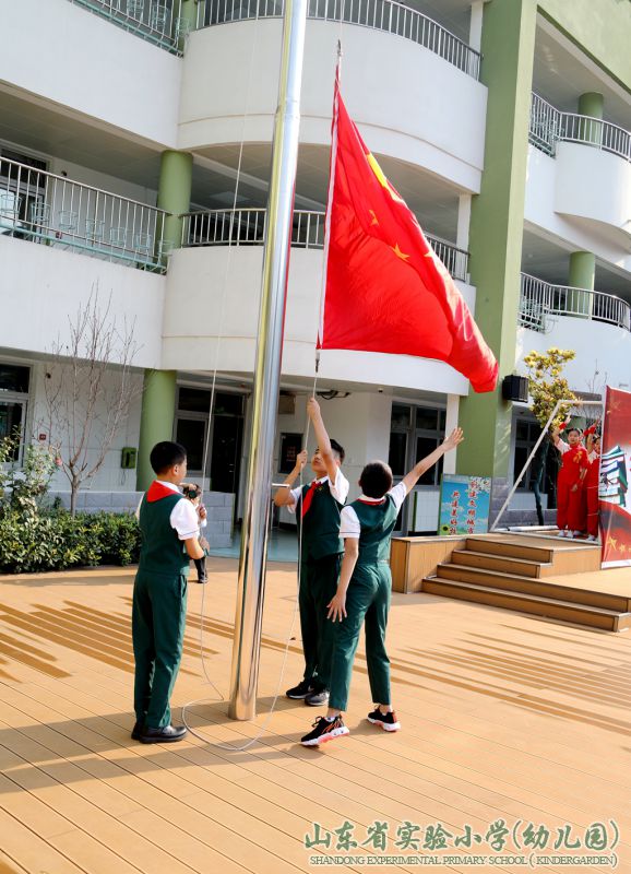 當鮮艷的五星紅旗在《歌唱祖國》的樂曲聲中展開,全體師生舉起右拳,面對國旗向祖國宣誓,立志把愛國情、強國志、報國行刻進心底,融入日常。