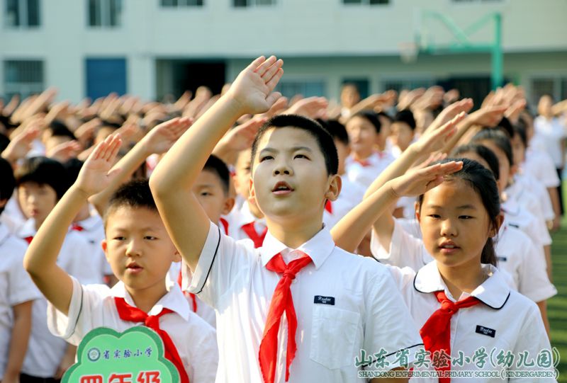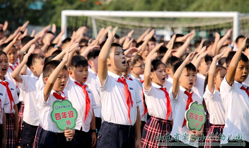 新學年伊始,學校舉行了主題為“用宣誓向祖國告白 以科技燃愛國熱情——升國旗、唱國歌,向祖國宣誓”的2019-2020學年度開學典禮。師生肅立,升國旗,唱國歌,剛剛在前一天晚上收看了“五星紅旗,我為你自豪”開學第一課的學生們,懷著加倍的激動與崇敬之情,向國旗敬禮,歌聲分外嘹亮。