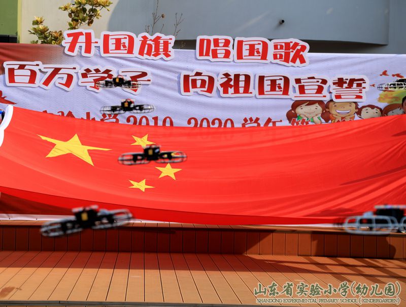 70年艱苦奮斗,偉大祖國日新月異向繁榮;70年創新發展,中華民族奮筆書就新華章!錚錚誓言猶在耳,深情歌聲再唱響。隨著《我和我的祖國》優美旋律的響起,師生手中的一面面國旗迎風飄揚,如一顆顆赤子之心向祖國告白。與此同時,無人機編隊在隊伍的前方徐徐升起,隨著音樂的律動,上下翻飛,變換隊形,給師生們帶來新奇體驗的同時,更以科技的進步昭示著創新的力量。