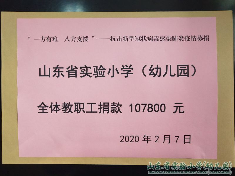 ——山東省實驗小學(幼兒園)干部職工為抗“疫”捐款10萬余元