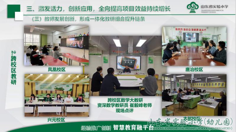 日常教研中落實“教研社區+班級錄播”組合應用;在跨校區教研上,利用直播平臺打通校際時空;激發教師專業成長內驅力,先后自愿結成近20個自主發展團隊如:魯一班、財智先鋒等團隊,在智慧教育發展的進程中彩繪出濃重的一抹。