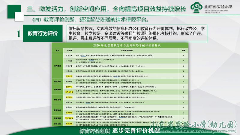 搭建智慧融通的技術保障平臺,打造教育行為評價、學習行為評價、專題活動評價三位一體的評價體系。