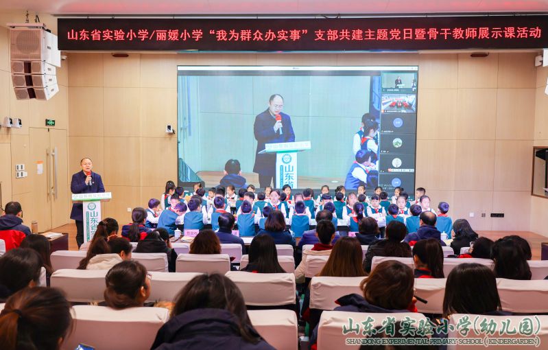 山東省實驗小學與合作學校歷城區興元小學部分教師代表一同在現場觀摩研討;山東省教育廳直屬機關黨委黨支部,菏澤市鄆城縣張營鎮麗媛小學,淄博市臨淄區聞韶小學、臨淄區敬仲鎮第一小學和第二小學的干部教師通過直播平臺在線同步參與;校(園)第一支部委員和全體黨員教師參加活動;省教育廳黨組第一巡察組有關同志列席活動。