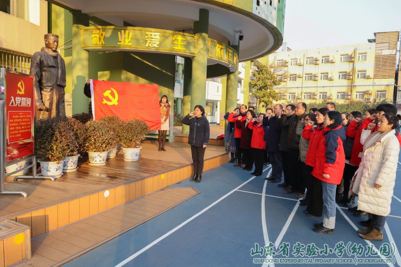 最后,全體黨員教師在苗建同志的帶領(lǐng)下,來到中共一大代表王盡美塑像前,面對黨旗,重溫入黨誓詞。誓詞鏗鏘,全體黨員紛紛表示要忠誠于黨的教育事業(yè),以實際行動擔當起為黨育人、為國育才的神圣使命。