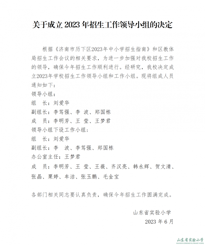 關(guān)于成立2023年招生工作領(lǐng)導(dǎo)小組的決定