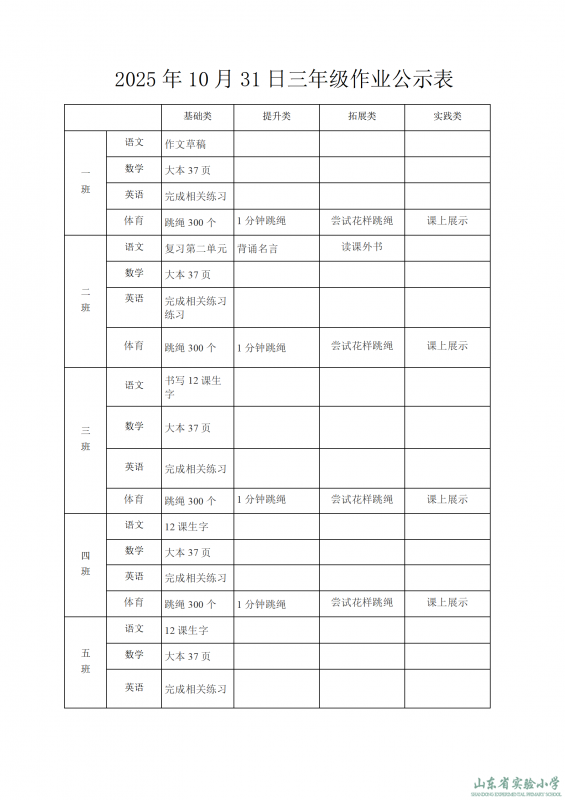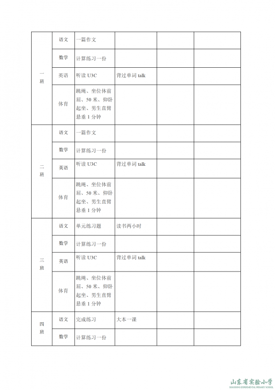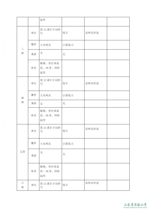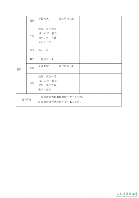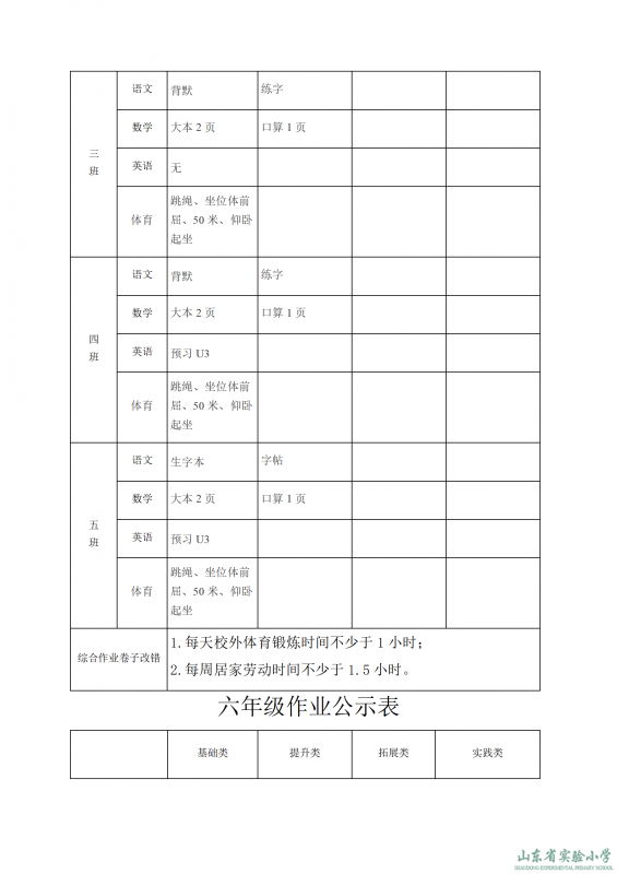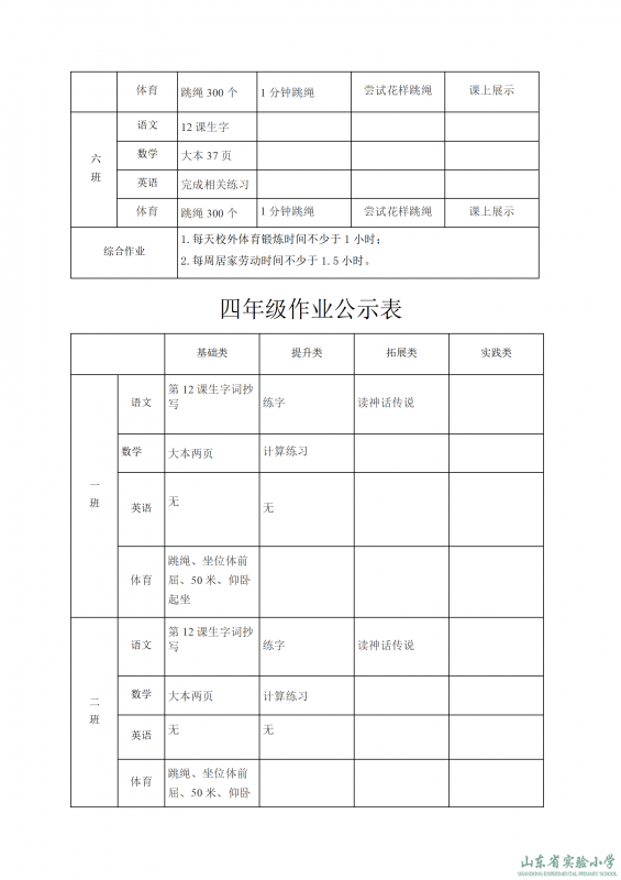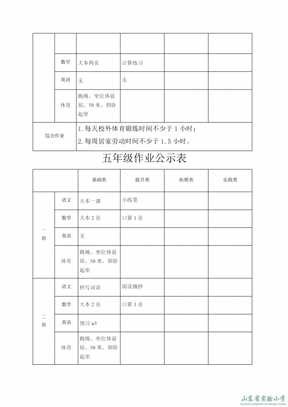 山東省實驗小學課程實施方案