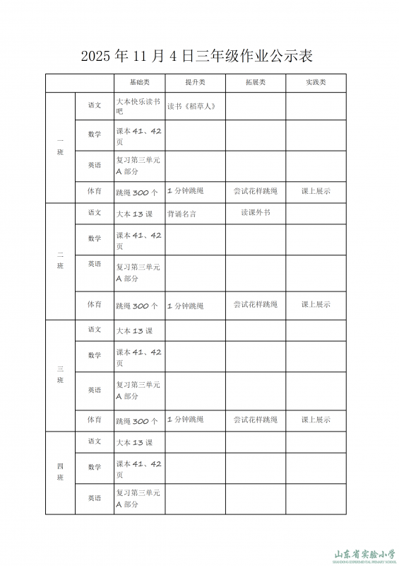 2025年11月4日作業(yè)公示