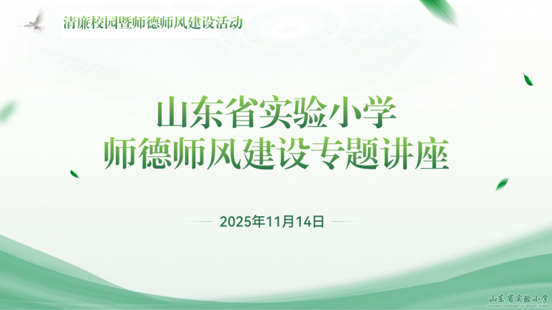 為深入貫徹落實新時代教師職業行為準則,持續鞏固和深化師德師風建設成果,2025年11月14日下午,山東省實驗小學特別邀請齊魯師范學院教師工作部部長賈龍教授,為全體教師作了題為“筑牢師德底線,踐行育人使命”的專題講座,校領導班子及全體教職員工參加。